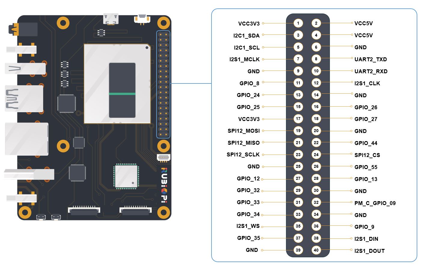 | 8 | 1000M Ethernet | 17 | 40-pin connector |