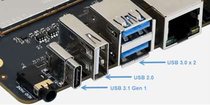 | Connectivity | 1 x USB Type-C (USB 3.1 Gen 1) 2 x USB Type-A (USB 3.0) 1 x USB Type-A (USB 2.0) 1 x Ethernet port (1000/100/10 Mbps full duplex auto-negotiation) 1 x UART for debug (over Micro USB) 1 x M.2 Key M connector (PCIe 3.0 x2) 40-pin LS connector supporting various interface options: - Up to 28 x GPIO- Up to 2 x I2C - Up to 3 x UART - Up to 3 x SPI - 1 x I2S (PCM) - 1 x PWM channel |