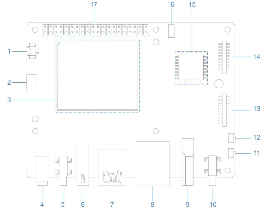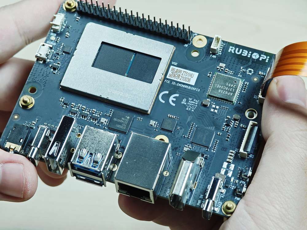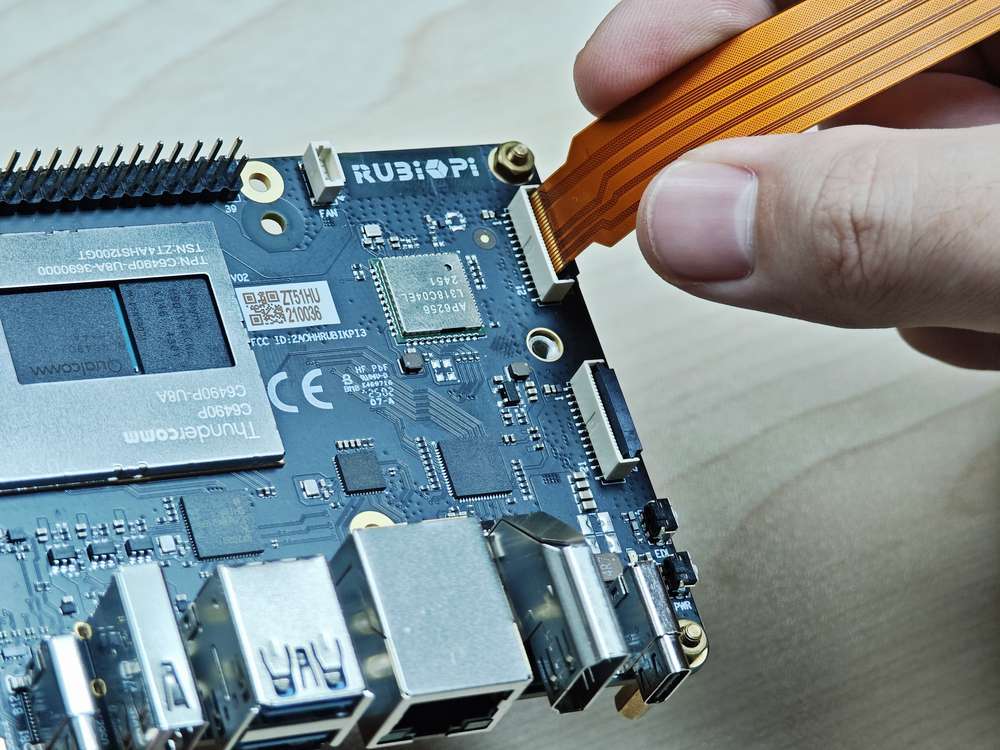 RUBIK Pi 3 supports the 22-pin FPC with a 0.5mm pitch and a 0.3±0.05mm thickness. For the compatible accessory, refer to Peripheral Compatibility List.