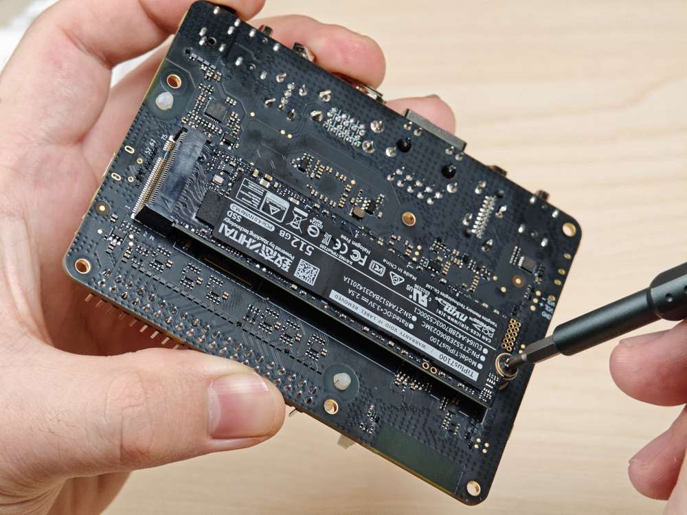 RUBIK Pi 3 provides an M.2 slot for NVMe storage, which can be used to install a 2280 (22 x 80mm) SSD hard drive. The M.2 Key M slot supports PCIe Gen3 x 2 and can deliver an output of up to 3.3V 2A. The switch of the M.2 connector can be individually controlled.