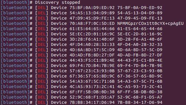 - To start a scan for nearby Bluetooth devices, run the following command: