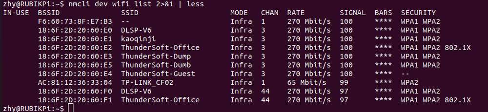 sudo nmcli connectionDelete a connection. For example, delete the RUBIKPi_AP_TEST connection: